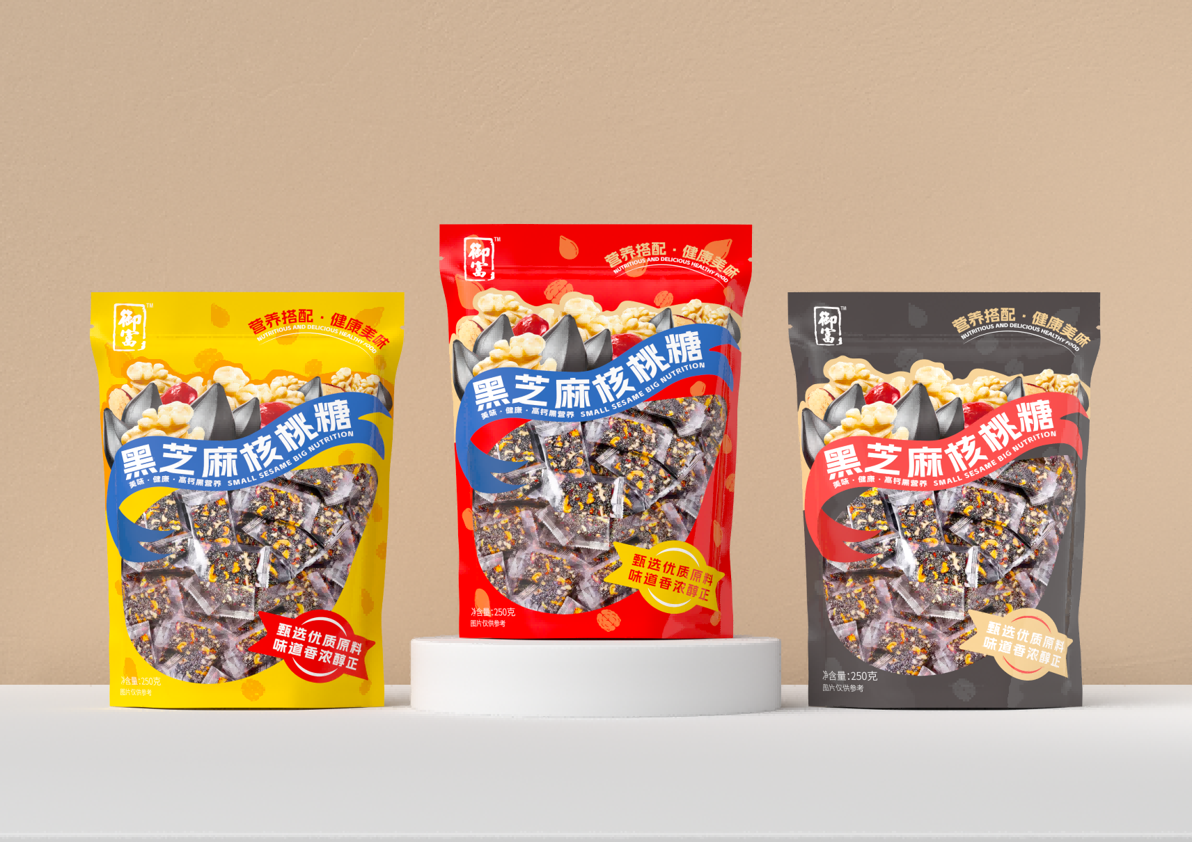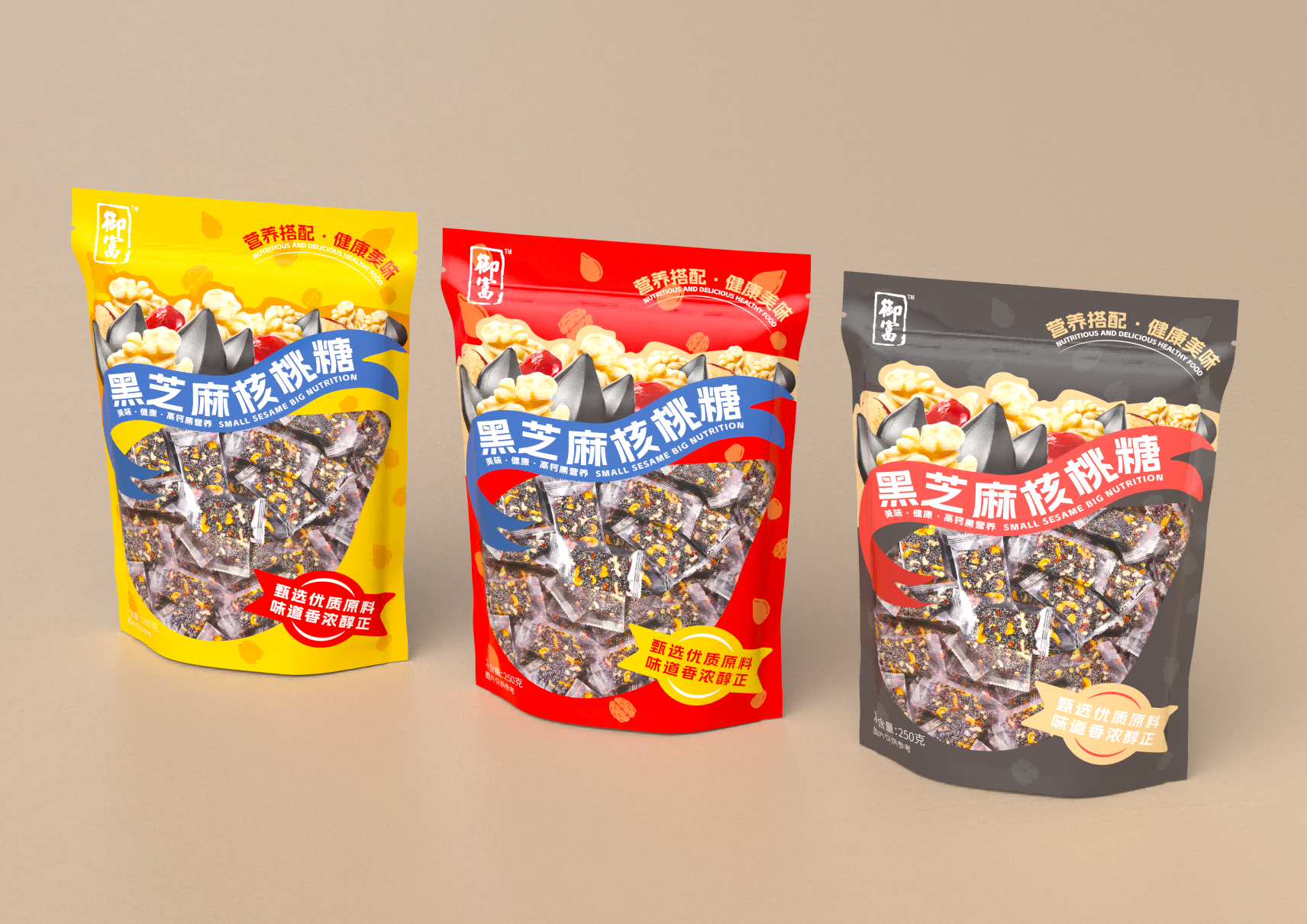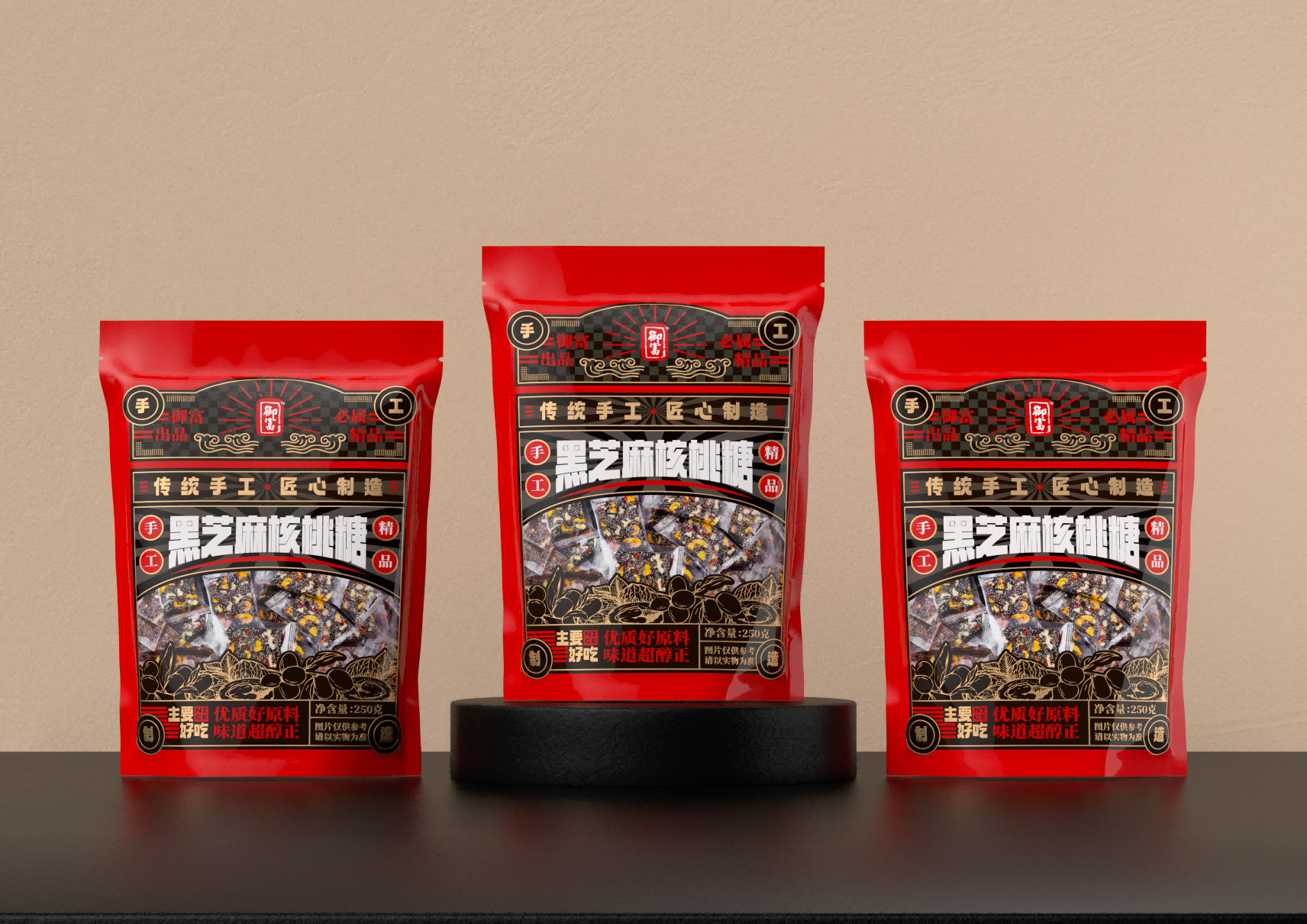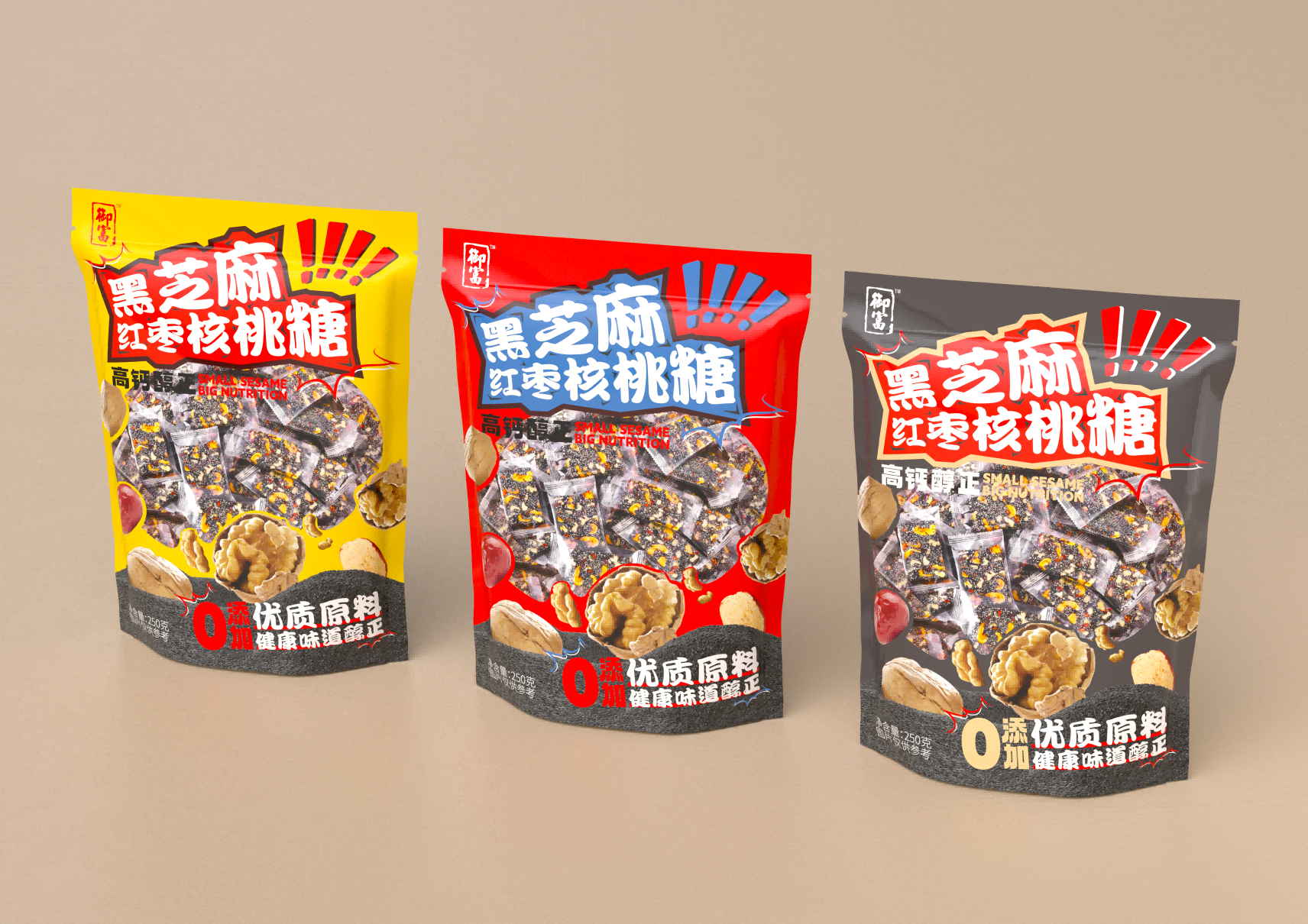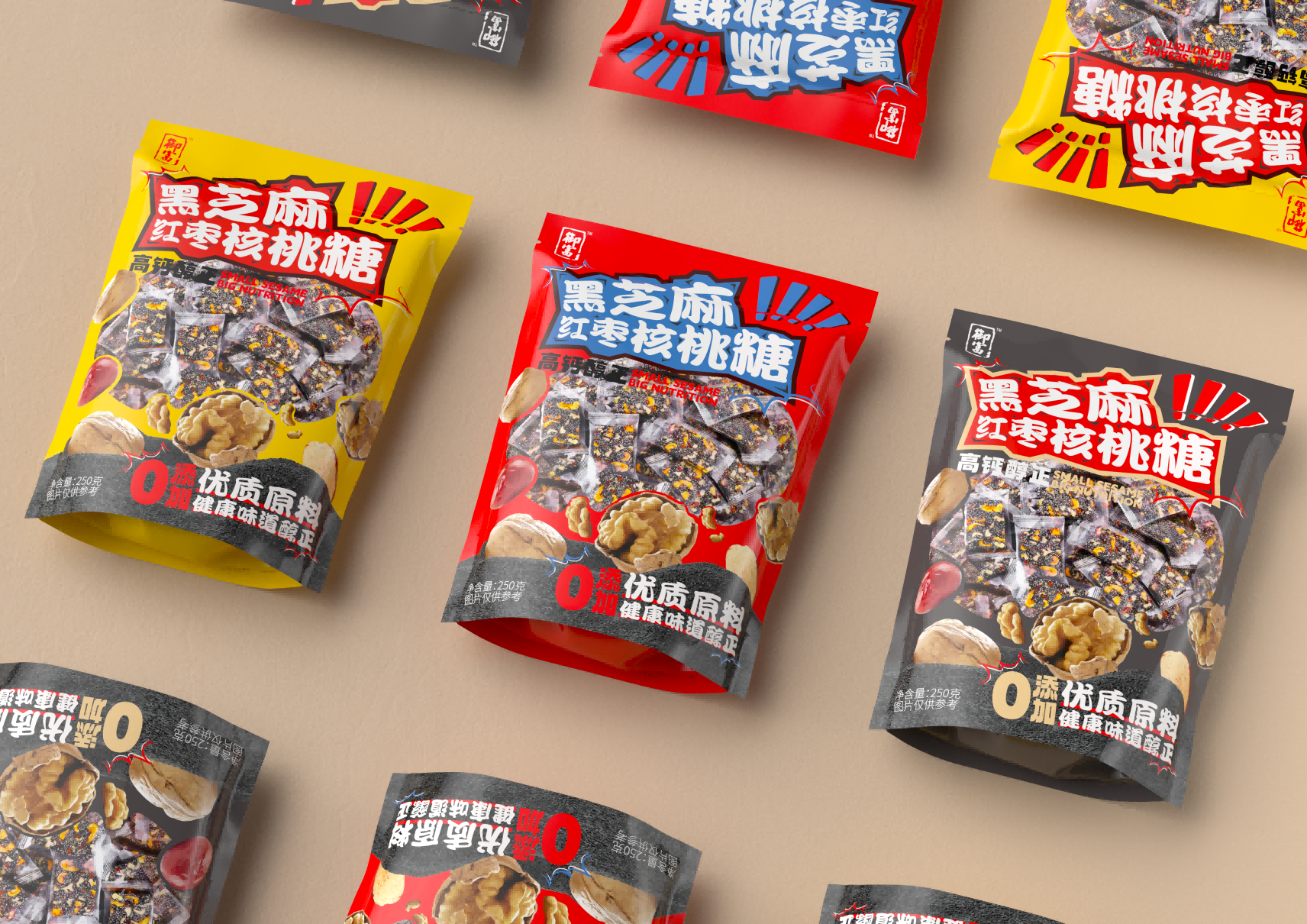 這款黑芝麻紅棗核桃糖的包裝設(shè)計,從色彩的運用到文字的排列,每一處細節(jié)都體現(xiàn)了設(shè)計師的巧妙構(gòu)思和精心打磨。我們將一起探索這款包裝背后的設(shè)計故事,感受設(shè)計師是如何通過色彩與文字的巧妙結(jié)合,將這款糖果打造成市場上一道獨特的視覺盛宴。首先,這款包裝在色彩的選擇上極為考究。黑芝麻、紅棗和核桃的自然色彩被巧妙地融入到包裝設(shè)計中,形成了一種溫暖而誘人的視覺效果。設(shè)計師巧妙地運用了這些食材的本色,不僅傳達了產(chǎn)品的健康理念,同時也給人以視覺上的舒適感和食欲刺激。其次,包裝上的文字布局同樣值得稱道。字體的選擇、大小的安排以及排版的布局,都經(jīng)過了精心的設(shè)計,旨在傳達出產(chǎn)品的核心價值和品牌理念。文字與圖案的和諧統(tǒng)一,不僅增強了包裝的可讀性,也提升了整體的美觀度。